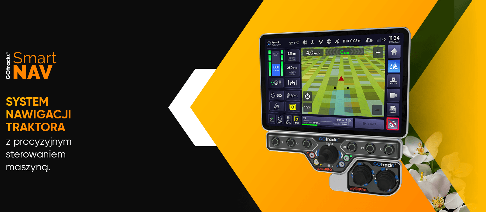 Smart NAV – automatyczna nawigacja traktora z kontrolą maszyn, w tym opryskiwacza, oparta na mapach zmiennego dawkowania VAR, z możliwością zdalnego dostępu i zarządzania poprzez aplikację mobilną GOtrack APP oraz platformę GOtrack Farm MANAGER
