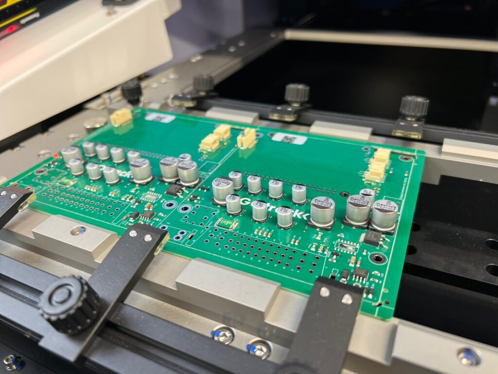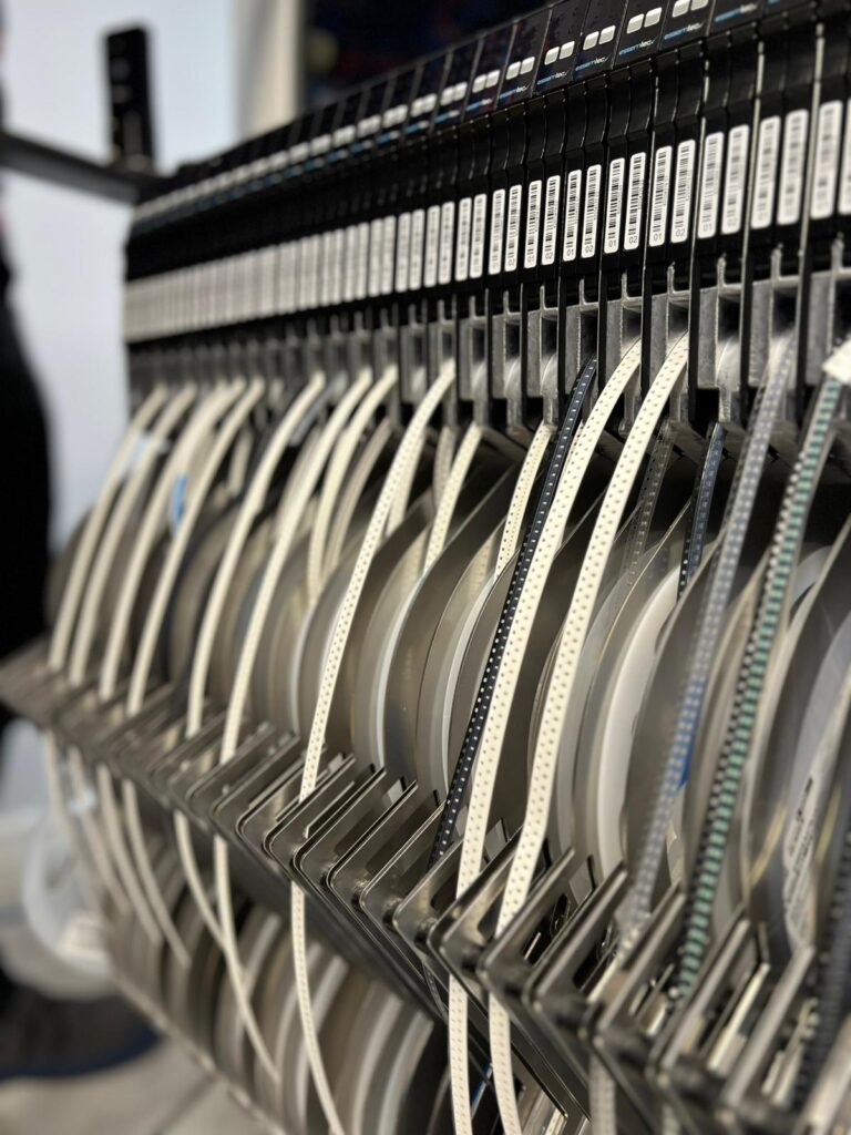 Automatyczny, szybki i precyzyjny montaż podzespołów elektronicznych na płytkach PCB wraz z nanoszeniem pasty lutowniczej.